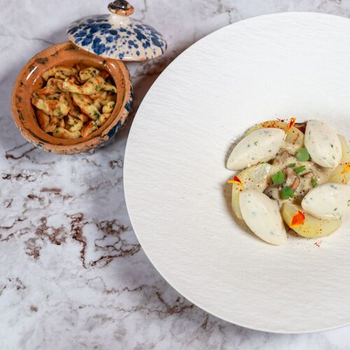 In the pretty wine-growing village of Marlenheim, this former posthouse, now a fine dining institution, comprises a cluster of picturesque buildings set around a paved inner courtyard and a well-groomed garden. The impressively rendered cooking is both delicate and eclectic, without forgetting some of the classics that contributed to the establishment’s reputation: white asparagus from Alsace in puff pastry with a hollandaise sauce, raviole of smoked foie gras and a gutsy truffle-flavoured jus, or the great grandfather’s, Paul Wagner vol-au-vent… The epitome of tradition!