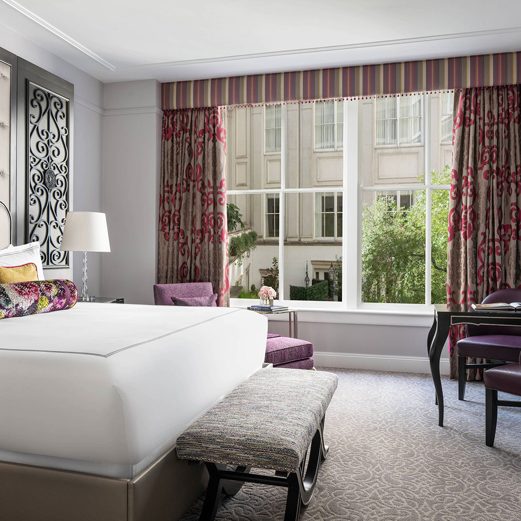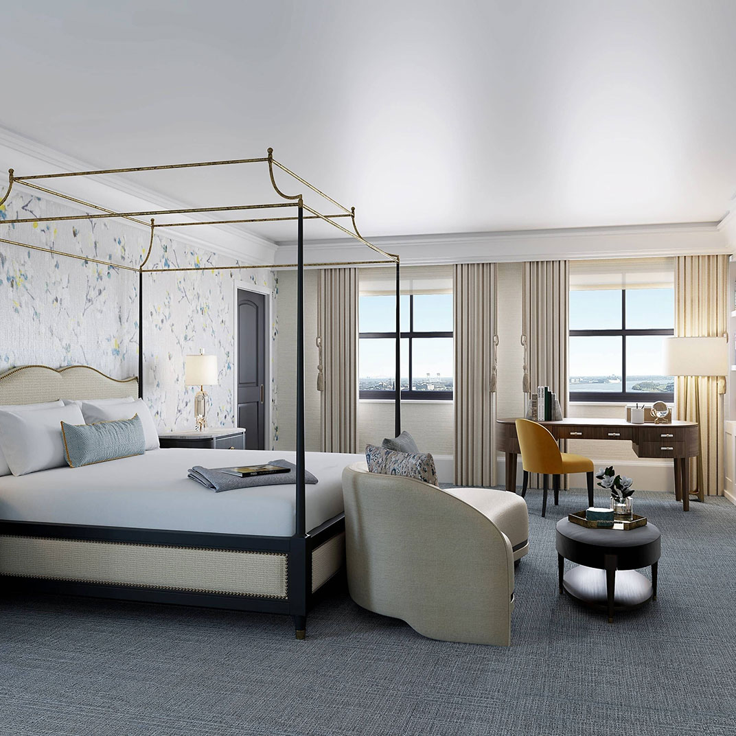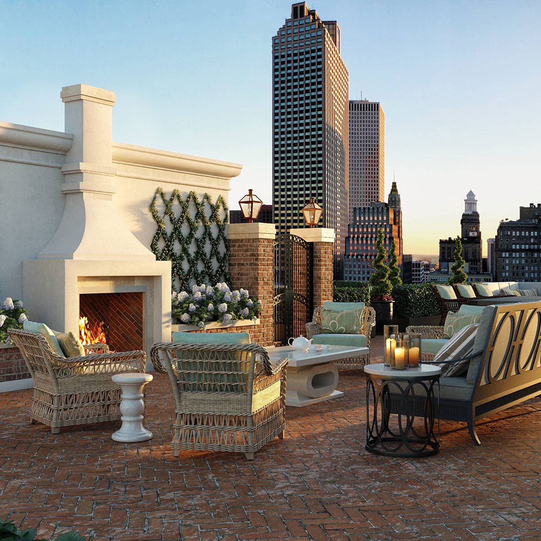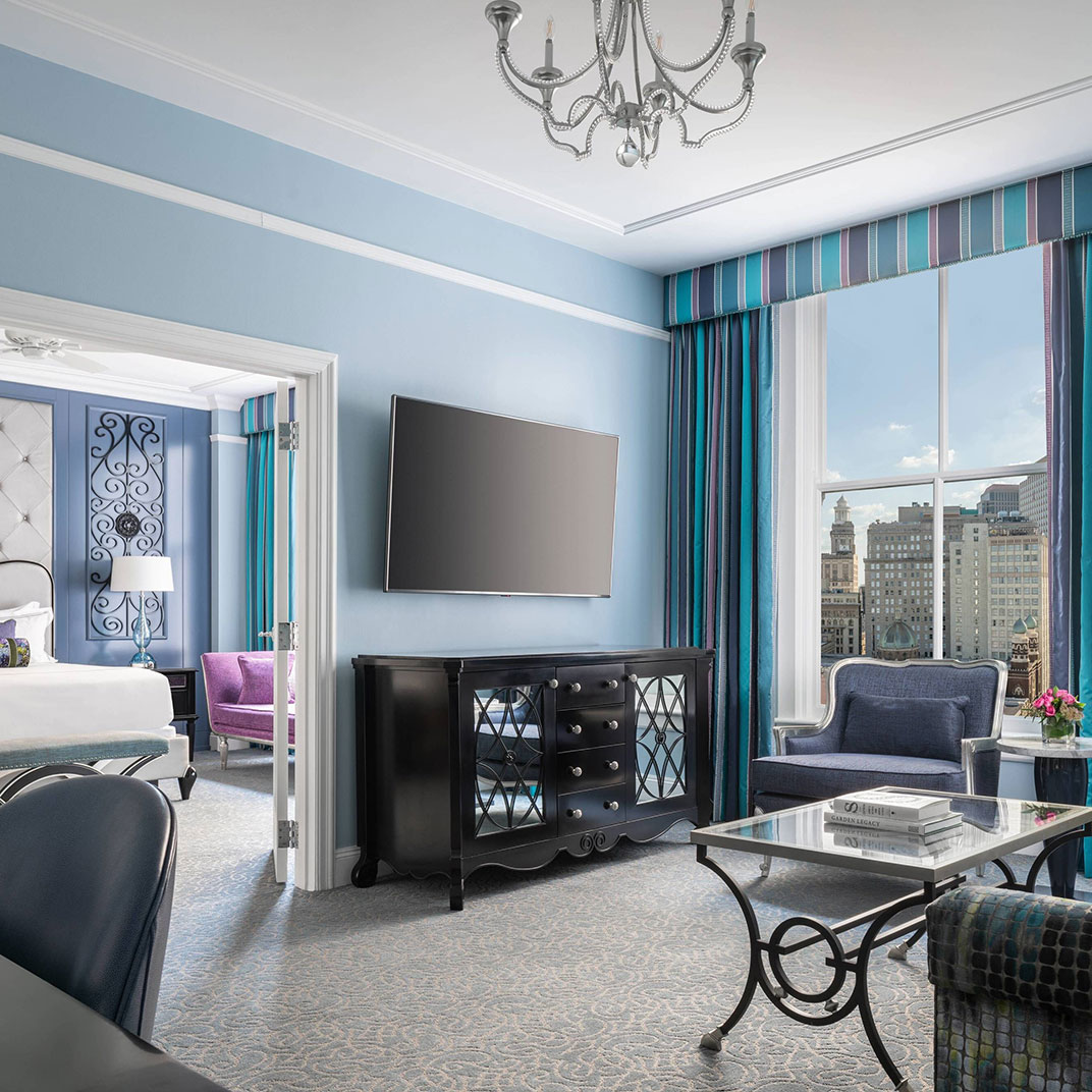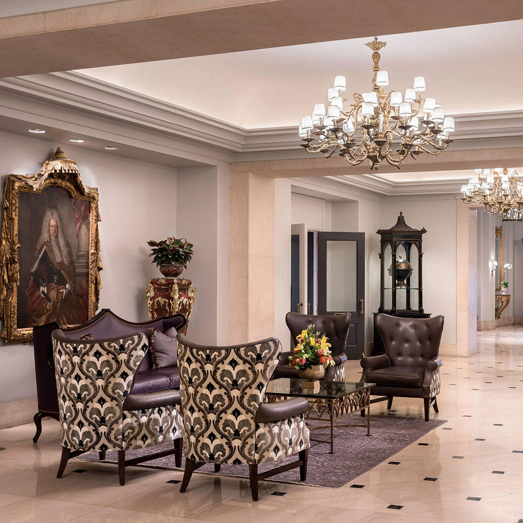Occupying a plum spot on Canal Street in the French Quarter, the hotel resembles one of the Garden District’s mansions from the outside, and works hard to emulate the same grandeur throughout the spacious interiors. High ceilings, fresh bouquets, and rosy-hued overstuffed furniture characterize the lobby and ballrooms. The design is far from cutting-edge or contemporary; rather, the public spaces seem fit to host a traditional wedding reception at any hour of the day. The hotel’s high standards and various luxuries, however, are above reproach, from expected amenities like feather beds, marble baths, afternoon tea, and turndown service to pleasing extras like rainforest showerheads, Bulgari White Tea bath products, pet-friendly provisions, and no fewer than four upscale restaurants onsite.
