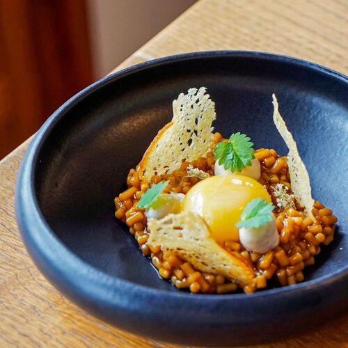Many will think that its location in the heart of the countryside, approximately 4 miles north of Amorebieta-Etxano, only provides disconnection, relaxation and natural beauty; however... it is the basis of its entire culinary philosophy! In the Agroturismo Azkarraga, an old farmhouse renovated with a Nordic aesthetic and which today also has five cosy rooms, this restaurant dazzles with its interior design, minimalist in concept and with large windows that frame the environment so that the wonderful surrounding landscape enters the room. The chef Fernando González champions a modern cuisine, with a Basque and traditional base, which is not exempt from creative touches, with the option of ordering à la carte or letting yourself be carried away by his tasting menu (La Revelía). Some of the dishes on offer have won us over, such as the combination of tear pea and citrus sabayon or the excellent texture of the hake with its pil-pil, and it is not unusual to see foxes, roe deer and squirrels out of the windows!