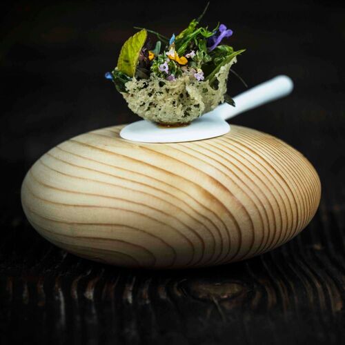 This spruce establishment in the upper reaches of Annecy is home to Franck Derouet and his associate Thomas Lorival. Together they craft a culinary repertory whose veggie and lake-focused slant is clearly founded on a locavore philosophy as everything comes from their own garden or within a 100km radius. Each dish is sprinkled with seasonal fruit, vegetables, flowers and herbs, adding a poetic and modern art flourish. Their work with fish from the lake involves in-depth reflection about texture and cooking methods, resulting in dishes like raw fera (lake fish) enhanced by a powerful garum, fermented over several weeks, or aged pike grilled like red meat. In a bid to respect the seasons, the chef may introduce the odd carnivorous note into his menu, particularly during the angling close season. As well as a wine list exclusively from local wineries, the establishment offers “food and jus” pairings of vegetable stocks, broths and herbal teas with different dishes that explore new tasting and aromatic horizons, while celebrating the manifest camaraderie and common ethos that motivate the kitchen and front of house teams. A genuine banquet for the senses.