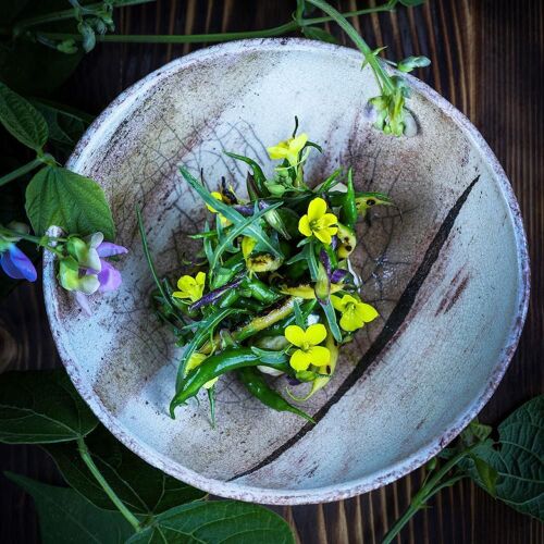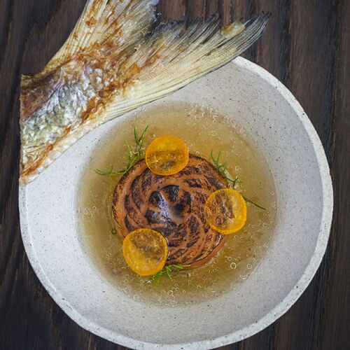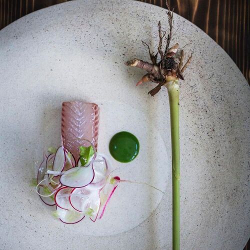 "Our cuisine uses plants and produce from the lake and brings out the flavours of our 1 500m2 of vegetable, aromatic and fruit gardens, which are all managed in line with permaculture philosophy. The wealth of produce from local and committed farmers with whom we work also contributes its flavours. Whether by implementing intelligent waste recycling or collecting and reusing rainwater, we strive to bring common sense to the entire life of the restaurant."