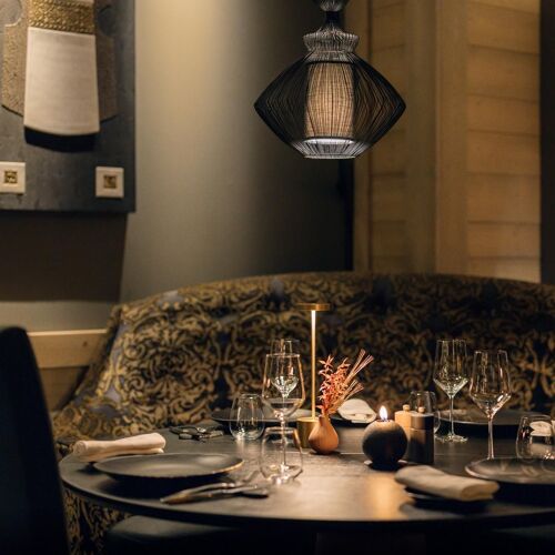 At Le K2 Altitude, this restaurant is comfortably set in a chic mountain-style decor with an intimate atmosphere. The attentive service is top-notch. The menu comprises traditional cuisine, and the French classics, the likes of which are served at the great Parisian restaurants, immediately catch the eye – wild mushroom tartlet with fermented porcini jus or roasted venison with tangy beetroot and lingonberries in a grand veneur sauce. Flavour and generosity are the order of the day, and that also applies to the modern and subtle desserts by Sébastien Vauxion.