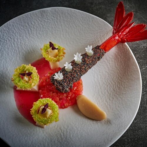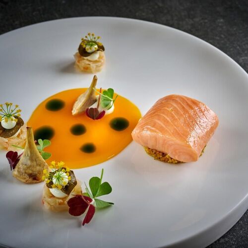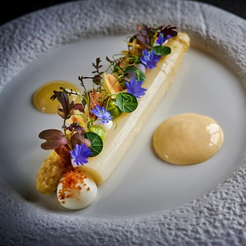 Sebastian Obendorfer has a true gift for creating beautifully intricate dishes, in which every detail is flawlessly executed. With a distinct culinary style, he seamlessly blends Japanese and regional elements with classic flavours. The quality of the ingredients is second to none – take, for example, the wonderfully tender saddle of venison, cooked to perfection, briefly seared and coated in a herb crust. He even hunts his own game. A seven-course tasting menu is available, with the option to add two signature dishes. The fabulous cheese trolley is curated by famous Alsace affineur Antony! Decent wine pairings, with non-alcoholic alternatives available. The interior is modern, elegant and comfortable; the oval-shaped wine cabinet in the middle of the room catches the eye. The hilltop location and large windows mean diners can enjoy unobstructed views of the undulating landscape of the Upper Palatinate – magnificent sunsets included! Cordial and highly experienced waitstaff. Tip: Stay overnight at Der Birkenhof hotel.