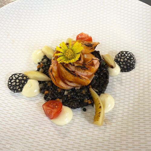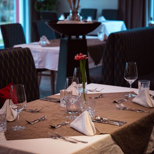 This friendly restaurant with its appealingly pared-back decor adjoins the historical building of a grain mill, which has been converted into guest accommodation. The cuisine is Mediterranean, regional and seasonal, and there will be something on the menu for those looking for vegetarian/vegan options. Lunch is also served Thu-Sat.