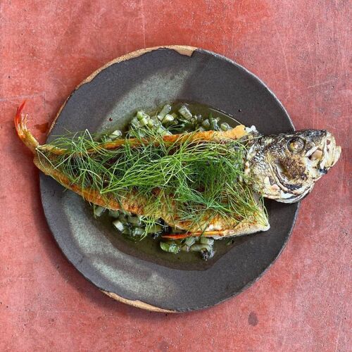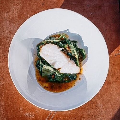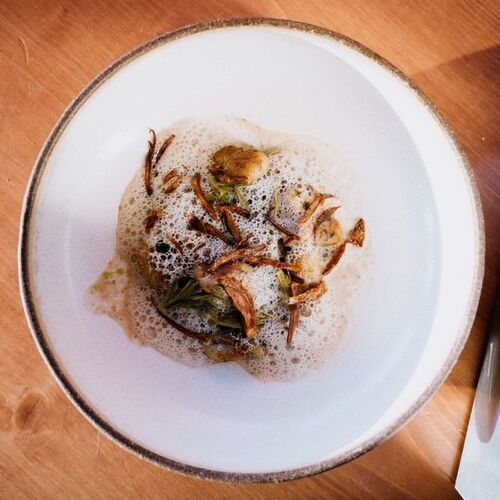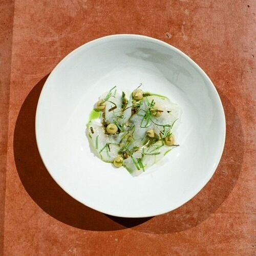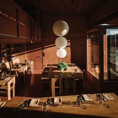 It is well worth coming to this small restaurant inside the impressive building designed by architectural firm Robertneun in the Lokdepot development. In the kitchen located on a gallery above the guests, Igor Kazakov turns out classic dishes with a modern, creative twist. There is a small à la carte menu with dishes designed for sharing – appetising options include "zander, spinach, horseradish" and "onion, hay, Jerusalem artichoke". The restaurant adheres to a sustainable philosophy and uses only regional and seasonal ingredients. As hinted at by the decorative preserving jars on display, fermented foods also play an important role. In the restaurant, which is decorated in a minimalist style with clean lines, wood and earth tones, the limited seats are distributed around a few small tables, a larger communal table in the centre and the bar/counter. There is a neighbourly atmosphere with a personal touch, and the front-of-house team is friendly and knowledgeable. They are also happy to advise on drinks – there is an exciting selection.