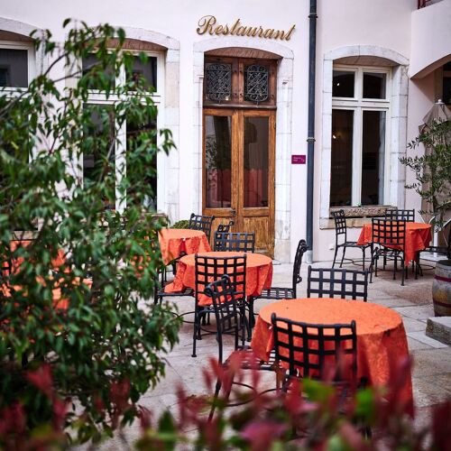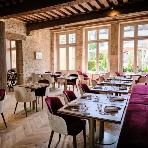 A Bernard Loiseau stamped score and a chic bistro vibe (stone, wood and velvet-upholstered banquettes) paint this culinary portrait. The menu includes classics such as eggs in a red wine sauce, pâté en croûte, Charolais ox cheek and Saône catfish, without forgetting beautifully fresh Burgundy veal tartare with smoked eel. The splendid wine list also unveils a wide range of wines by the glass.
