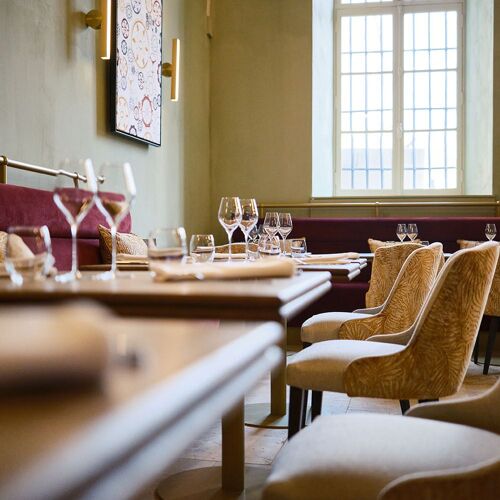 Set in a former 18C grain store, this handsome dining room, with vaulted ceiling and contemporary details, is home to the Besançon outpost of the Bernard Loiseau Group. The menu focuses on produce and recipes from Bourgogne-Franche-Comté: hotpot of snails with cancoillotte and Morteau sausage, chicken fricassée Gaston Gérard style, Côte d’Or pork chop with Jura tomme gratin… Enticing dessert trolley and a decent selection of wines, particularly by the glass.