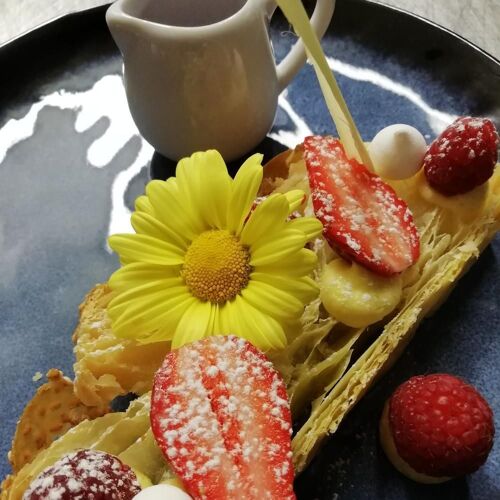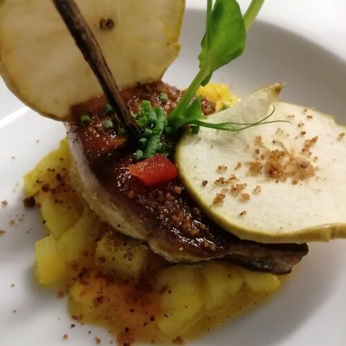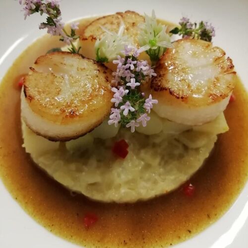 On Île St Laurent, a contemporary restaurant offering a well-crafted lunchtime menu at prices that make sense. For example, warm mushroom mousse with vin jaune and a creamy Mont d’Or cheese topping. The evening menu is more elaborate (foie gras, turbot, lobster). Some of the super fresh vegetables and fruit come from the kitchen garden.