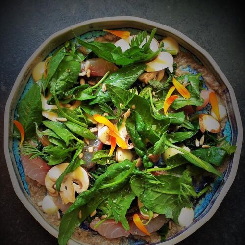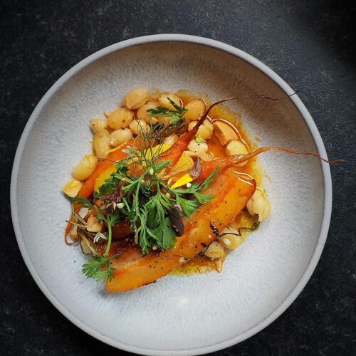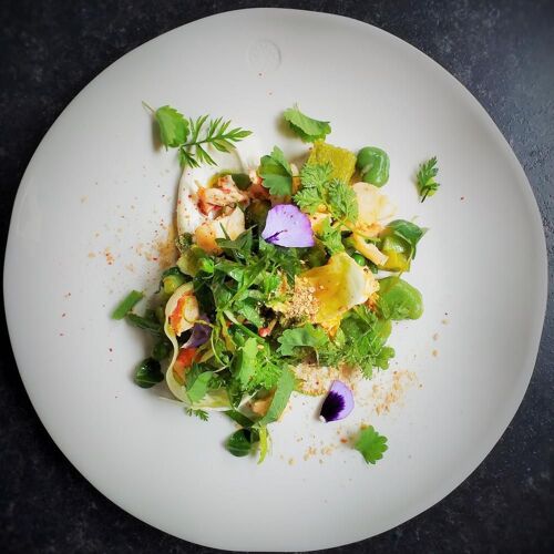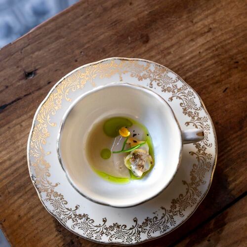 "We do everything that is helpful, reasonable and responsible to showcase our territory, its producers and our work. Hyper-local supplies from committed market gardeners, with a policy of absolute seasonality for vegetables and fruit, which are mostly organic; wild harvesting; small-scale and responsible coastal fishing sourced directly; recycling; repurposing of organic waste into compost; groceries bought in bulk, without packaging; micro-filtered water."