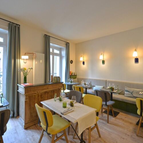 Make a stop at this establishment on a small square in the city centre. The interior is inviting, with its warm decor of untreated wooden floorboards, fabrics and vintage porcelain. Marine and Baptiste Fournier put their hearts into serving particularly polished cuisine, showcasing fish sourced from the market and vegetables from farmers. Menu-carte at lunch, "surprise" menus at dinner. Natural wines.