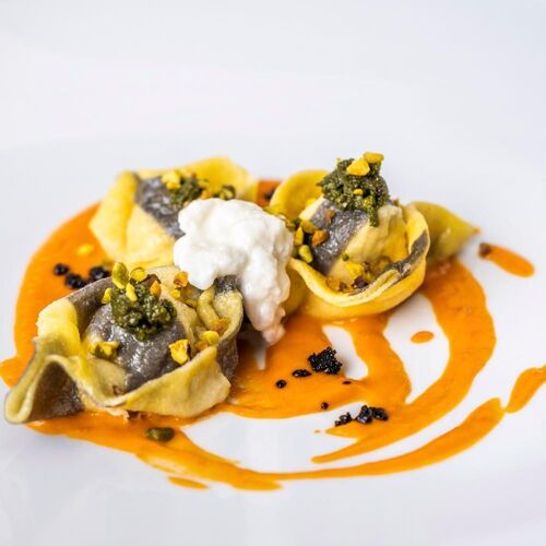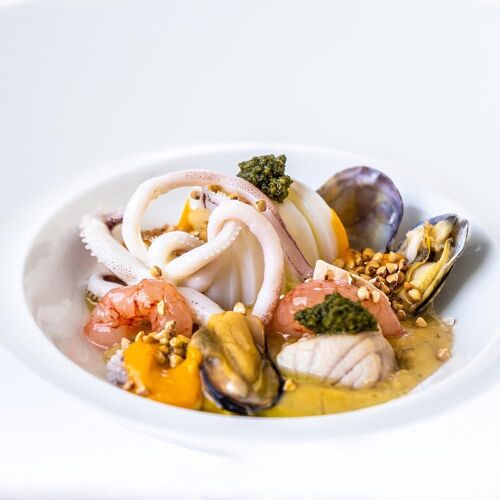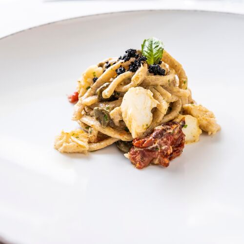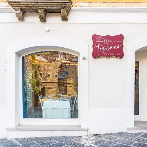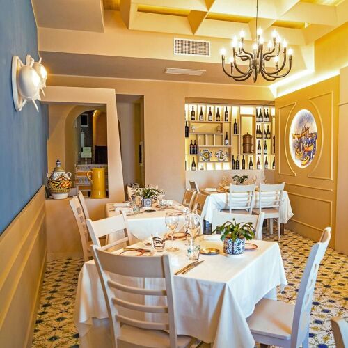 This attractive restaurant with delightful views seems to be perched on the cliff, whereas in fact it’s situated just a stone’s throw from the town’s main piazza and Murat castle. Although inspired by Calabria’s maritime traditions, the contemporary-style cuisine also includes a few meat dishes.