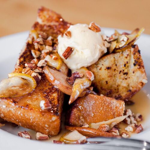 If the name doesn’t have you salivating yet, the dishes being ferried to and fro by the bustling staff certainly will. Bacon & Butter lures diners and lots of them—you’ll see lasting queues late into the morning—thanks to its promise of good old-fashioned American breakfast and brunch.