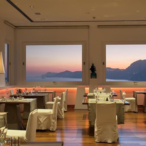An atmospheric panoramic lift leads from the Casa Angelina hotel to the restaurant: in good weather you can dine on a terrace, by candlelight and with a breathtaking view of the Coast. Leopoldo Elefante's cuisine is Mediterranean and largely dedicated to the sea, although there is never a shortage of excellent meat specialities. Not to be missed is his “soufflé alla pastiera”, a signature dish that combines an international dessert with typically Neapolitan flavours. Great care is given to presentation and the lighting uses various colours to accompany the guest through the different courses, changing in tone and intensity throughout the meal. The chef is well supported by the service, precise and friendly, and an important wine list. The wine cellar is around 1500 labels, with an incredible availability of large formats for connoisseurs.