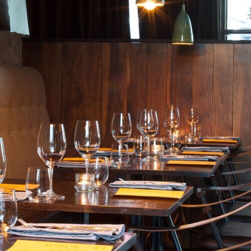 Hosiló translates as ‘small room’, an apt name for this single-storey building sandwiched between two larger structures in a side street not far from the House of Collections. There’s a slightly industrial feel to the room, which comes with a high ceiling, a central bar and an unusual trapezoid window to the rear that makes the most of the daylight hours. It’s owned by three friends and, unusually for the city, has a loyal local following thanks to both its laid-back ambience and its concise, market-inspired menu that offers the likes of halibut with sweet potato gratin and miso sauce.
