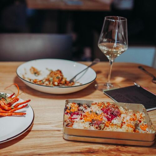 Perched above Tennyson Street, Hey Kiddo stands out as the hippest of Denver powerhouse Chef Kelly Whitaker’s empire. The third-floor venue encompasses a rooftop bar area and a bespoke cocktail lounge in the back (referred to as “Ok Yeah”) but the restaurant is the heart of the operation. The playful menu centers around broadly Asian-inflected shareable plates like an exceptionally crunchy take on Korean fried chicken, or tender pork ribs with a salted plum barbecue sauce, accompanied by compelling sides like crispy potato pavé with a trout roe gravy, or an assortment of house-made pickles and kimchi. For a sweet finale, red miso ice cream can be customized with the likes of brûléed banana, broken cone or grappa whipped cream.