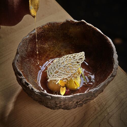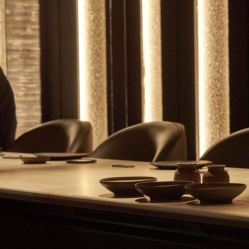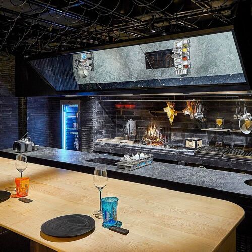 This restaurant is somewhat reminiscent of a clandestine dining space, and as such a meal here is quite the experience, where the team in the kitchen play ingeniously with smoky flavours and aromas without ever overwhelming the palate. Located in the Hyatt Regency Hesperia Madrid, Smoked Room has its own entrance and views itself as a highly exclusive dining space which is separate from the Leña Madrid restaurant and has its own valet parking service. The aesthetically pleasing dining area has an intimate, meticulous feel and features a striking Japanese-style bar facing the kitchen as well as just two tables. The subtle cuisine with a global touch is focused around two Omakase-style tasting menus entitled Kõsei no Hi and Matsuri (both with a different wine pairing option), which are based around lightly smoked and charcoal-grilled dishes and always features exquisite combinations of the finest seasonal produce, matured fish and meats, seaweed etc. There is also constant interaction here between and the chefs, serving staff and guests.