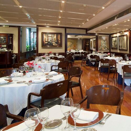 Well - renowned, family - run establishment offering a delicatessen, elegant dining rooms in a classic style and a pretty patio. Menu of cuisine from Navarre and a full wine cellar.