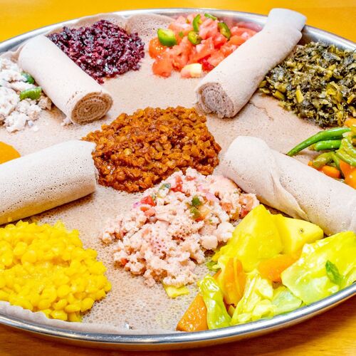 This kitchen's exquisite cuisine reflects the many fascinating nuances of Ethiopia itself. While many cultures break bread together, few do it as well as this one, where injera is torn apart to scoop up stews, like awaze tibs. Its tender lamb cubes in a smoky, brick-red berbere are simmered to tender perfection, then crowned with greens, spicy lentils and potatoes for a dish that rarely receives the credit—or fanfare—it is due.