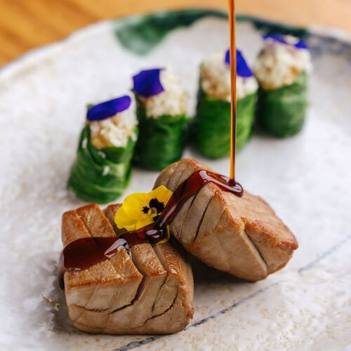 Its prime, raised position and smart outdoor terrace lend an element of glamour to this Japanese restaurant. The wide-ranging menu covers all the bases, with plenty of sushi – both modern and traditional – on offer. The robata grill is used to particularly good effect and there’s also a well-priced set lunch for those short on time. The service team are helpful and attentive.