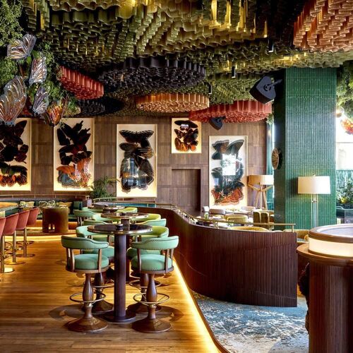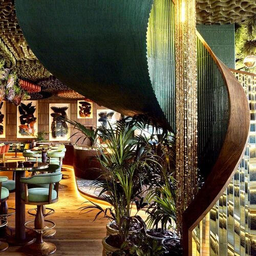 Spread over three floors, the flamboyant and animated Amazónico comes with a greenery-filled, tropical rainforest themed interior, an open kitchen and a lively bar. The Latin American menus reflect the varied communities of the Amazon by offering everything from sushi and sharing plates to grilled meats and fish; all the dishes are colourful, vibrant and full of flavour. Be sure to book a table on the first floor for prime views of the chefs in action in the open kitchen, then head to the panoramic terrace for a Latin-inspired aperitif.