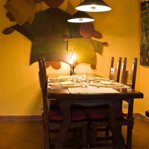 In the historic heart of Bobbio, on the first floor of a former 17th-century convent, three intimate, well-appointed rooms welcome you with lively paintings and vintage objects. The menu is lean yet rich, offering four options for each course, blending tradition with playful flavors. The wine list is like a small encyclopedia, featuring a thousand labels from around the world, with vertical selections for connoisseurs. Don't miss the ricotta pearls with sun-dried tomatoes, black olives, and Parmesan.