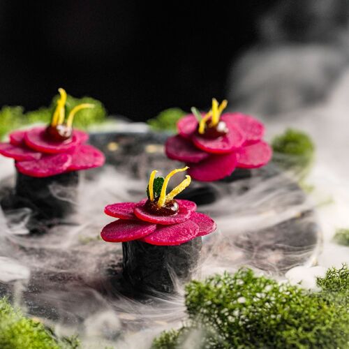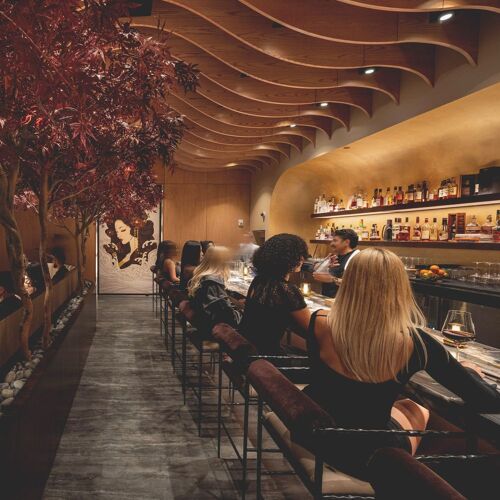 Set within the Lake Nona Wave Hotel, Nami makes a splash with its lofted ceilings and sexy vibe. There are two distinct dining experiences here: a dining room spotlighting contemporary Japanese cuisine (think skewers and maki) and a chef's counter tasting menu presenting a creative interpretation of Japanese cuisine. On the tasting, discover the likes of citrus-cured buri with yuzu-cured flying fish roe or a decadent riff on a corndog with caviar and triple cream Brie enhanced bechamel. Beef and broccoli, that Chinese-American staple, is given the luxe treatment with grilled wagyu and broccoli served four ways. À la carte standouts include barbecue unagi over rice and the dojima roll, a tender sponge cake roulade filled with whipped cream and glazed with mango gel.