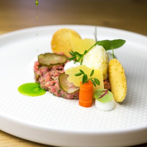 Hotel de Sterrenberg's restaurant draws on its natural surroundings. The interior is sleek yet warm, combining lots of wood with concrete, and a large wooden stag's head that draws the eye. The chef believes in sourcing his produce locally, using local suppliers such as Gert van Eldik and the Veluwe asparagus farm. Diners are served a surprise menu composed of intricate and beautifully presented dishes. Think venison from the region with carefully considered vegetable accompaniments and a game jus enhanced with vermouth. A proud ambassador for the Veluwe!