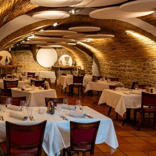 In the restaurant of this hotel dating from 1750, the team conjures up a cavalcade of delicate, expertly crafted Gallic dishes, made with seasonal produce. Examples: artichoke, smoked whitefish from the nearby lake and buckwheat, or pan-fried calf’s sweetbread, morels and asparagus. The well-curated wine list is definitely worth a gander. The cheerful front-of-house team enjoys explaining the finer points of each dish. The interior sports small bistro tables, there is a peaceful terrace to the rear that is heavenly in fine weather and a casual, affable spirit reigns throughout.