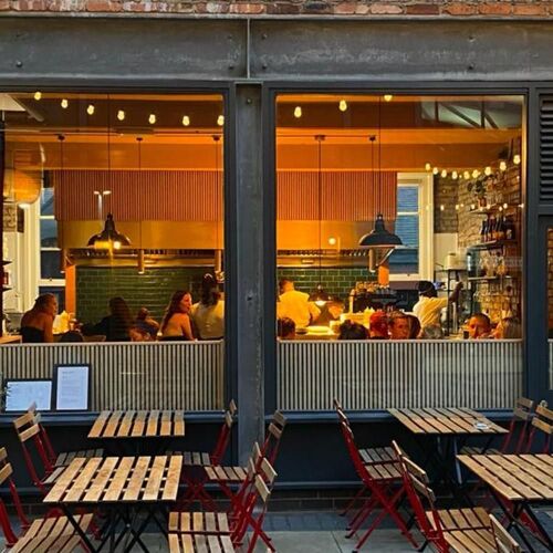 This welcoming bistro is located on Deansgate Mews, an elevated 'street' that’s part of the redeveloped Great Northern building in the city centre. The menu comprises an appealing array of sharing plates which champion produce from local, ethical growers. The eye-catching, vegetarian-led dishes are served one at a time and their flavours are punchy and pronounced. Craft beers and low-intervention wines accompany, while the nearby Holy Grain bakers provides them with some exceptional sourdough bread. Service is bubbly and the atmosphere is buzzing.