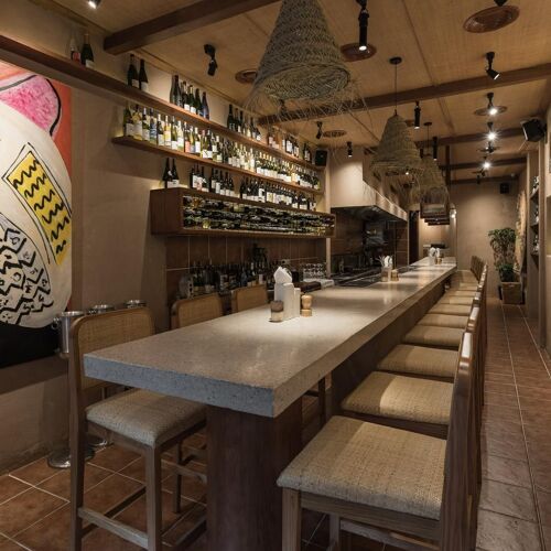 An 18-seat kitchen counter is the focal point of this snug buzzy wine bar. Shelves of empty wine bottles adorn the walls, and the wine list showcases over 350 vintages from the Old World. They offer a vast array of wines by the glass and from a Coravin. The neatly presented, modern dishes are Mediterranean at heart with an Asian twist and deliver accurate, well-judged flavours. Don't miss the homemade pasta: the pride and joy of Etēsia.