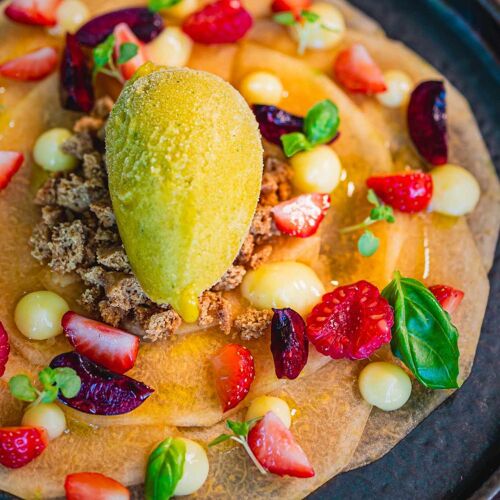 The menu features modern French cuisine, which is rich in enthusiasm and sophistication. Seasonal produce takes pride of place on the inventive menu. A genuine culinary experience.