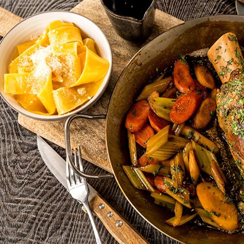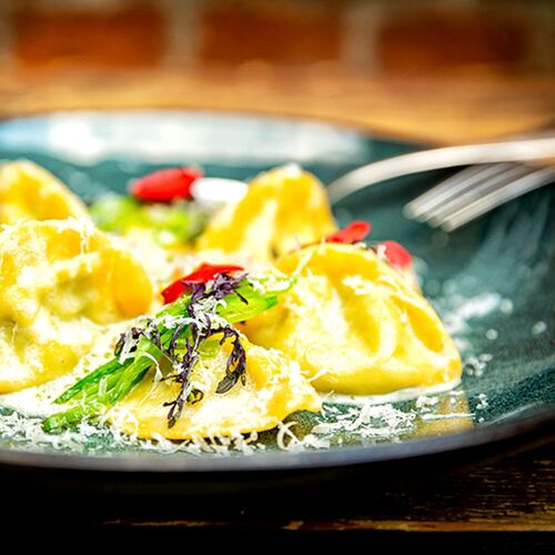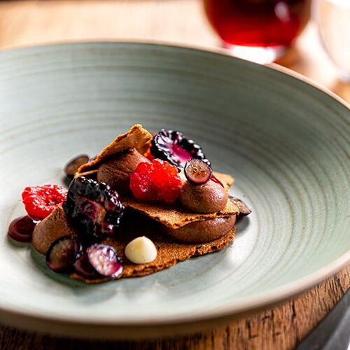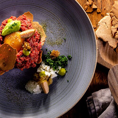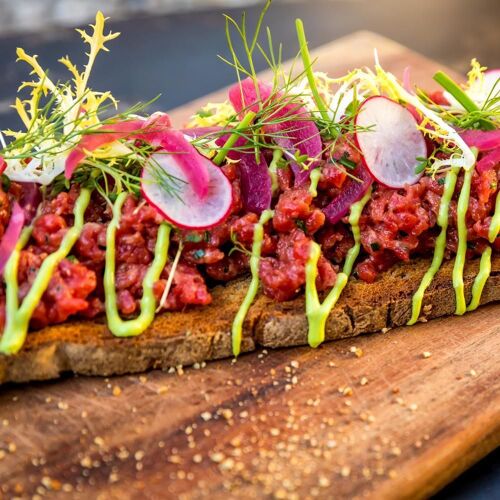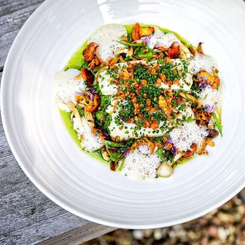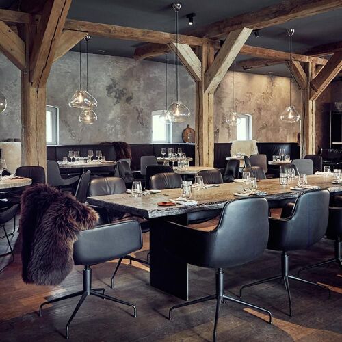 This hip place is named after the concept of hygge. In Danish and Norwegian, this describes a feeling of cosy wellbeing and comfortable conviviality – very fitting for the atmosphere conjured up in this pretty half-timbered house, which used to be a stable for polo horses. Allying rustic timber elements and modern design, the interior is chic and stylish, with the central fireplace as the focal point. The atmosphere is pleasantly lively. Unfussy seasonal dishes make up the HYGGE set menu and surprise menu; alternatively go à la carte – there are great vegetarian options, too. Or why not order a selection of plates for everyone in your party to tuck into? Appealing wine list. The trendy bar lounge is also popular, as is the charming terrace in summer.