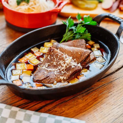 As soon as you enter this restaurant, you fall into the embrace of its inviting atmosphere: Charming tavern-style decor, soft candlelight and warm, attentive service make for a delightful setting – no wonder so many locals flock here as regulars. The Austrian cuisine is a hit – the "Schmankerl Brett" (snack platter) and stone-baked flammkuchen, as well as Tafelspitz (prime boiled beef) and Wiener schnitzel are crowds-pleasers, not forgetting the caramelised Kaiserschmarrn (shredded pancake) with stewed plums. There is also an appealing three- or four-course set menu dubbed "Lütten Jacob Genusstafel". The wine list is exclusively Austrian, and some labels are available by the glass. No wonder this place has become a favourite of so many foodies!