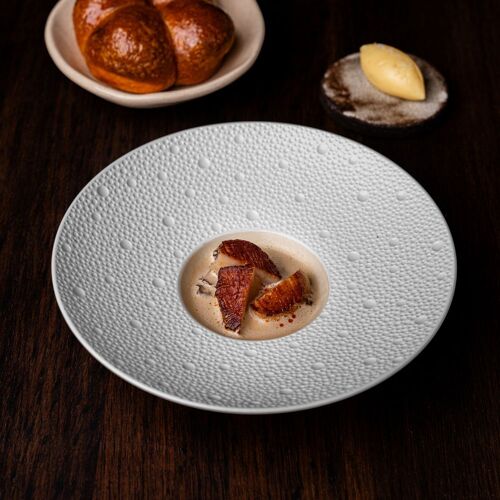 Set in the KODE 4 art museum, this stylish restaurant offers views over lake Lille Lungegårdsvannet. Larger than life Chef-Owner Christopher Haatuft passionately oversees the whole place, serving dishes and engaging with guests. The 10 course tasting menu is informed by fabulous Norwegian produce, always including scallops landed nearby by Christopher’s close friend. Dishes have a freshness about them and allow the main ingredient to shine.