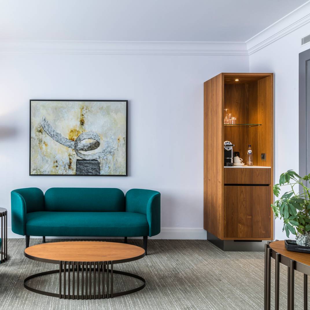 Nagomi Gym & Wellness offers an indoor pool, a sauna, a fitness center, and a Japanese-inspired spa experience. But the Okura’s heritage is nowhere more evident than in its restaurants. Ciel Bleu, the modern Dutch gastronomic restaurant, is the flagship, with its two Michelin stars; another belongs to the kaiseki-style Yamazato, which is the first traditional Japanese restaurant in Europe to earn a Michelin star.