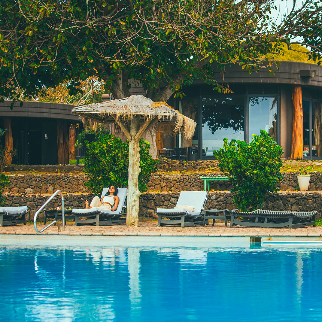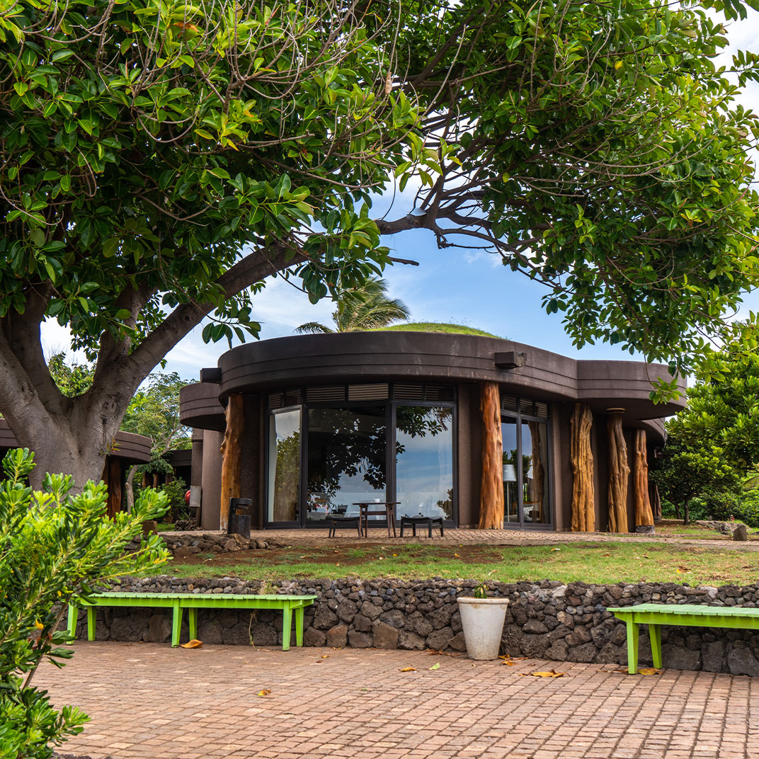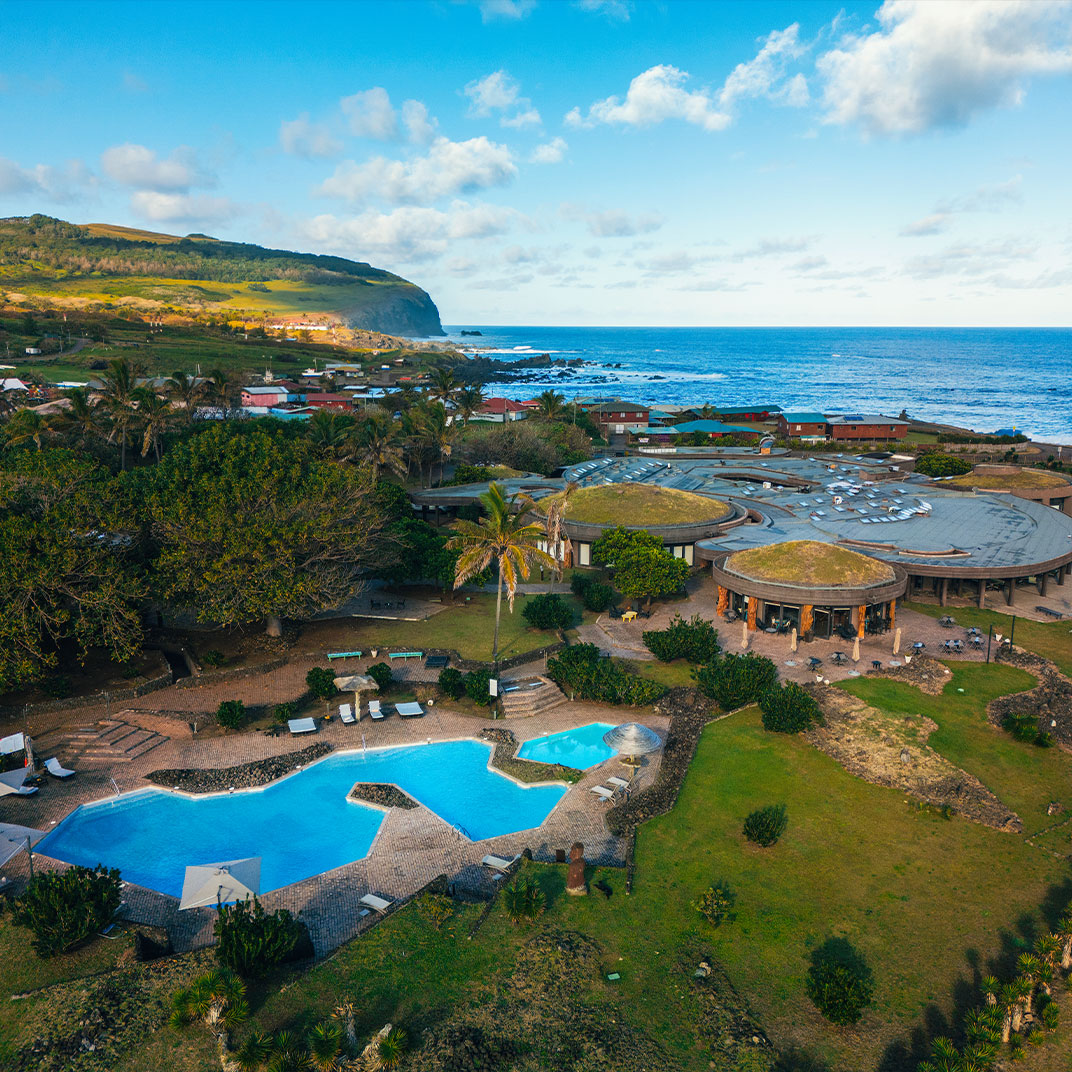Named for the only town on the island of Rapa Nui — Easter Island — Hotel Hangaroa Eco Village & Spa is a luxury hotel built to blend into the environment. The design was inspired by indigenous tradition, comprising a village-like cluster of low-lying buildings with grass roofs and native wood beams. Guest rooms feature locally sourced materials, from volcanic stone to cypress wood, as well as handmade clay soaking tubs and private terraces overlooking the ocean. There’s a cool geometric swimming pool — the island’s largest — plus a spa and two restaurants specializing in fresh seafood. You’re here for the island’s main attractions, of course, to see the famous moai statues, beaches, and archaeological sites, and the staff can arrange it. But the hotel, located just a few minutes’ stroll from the harbor, is a wonderful refuge to return to at the end of the day.
