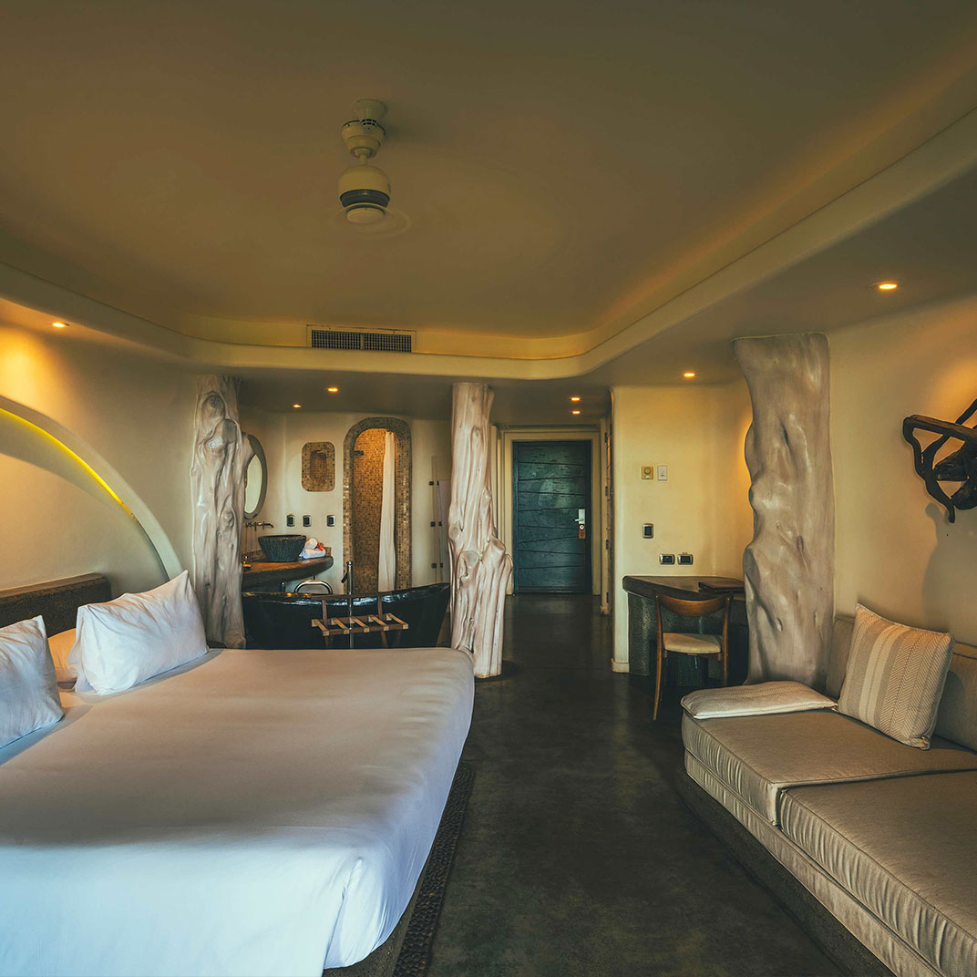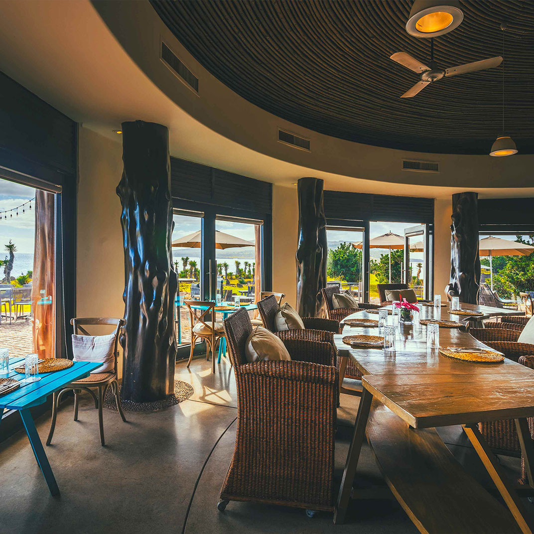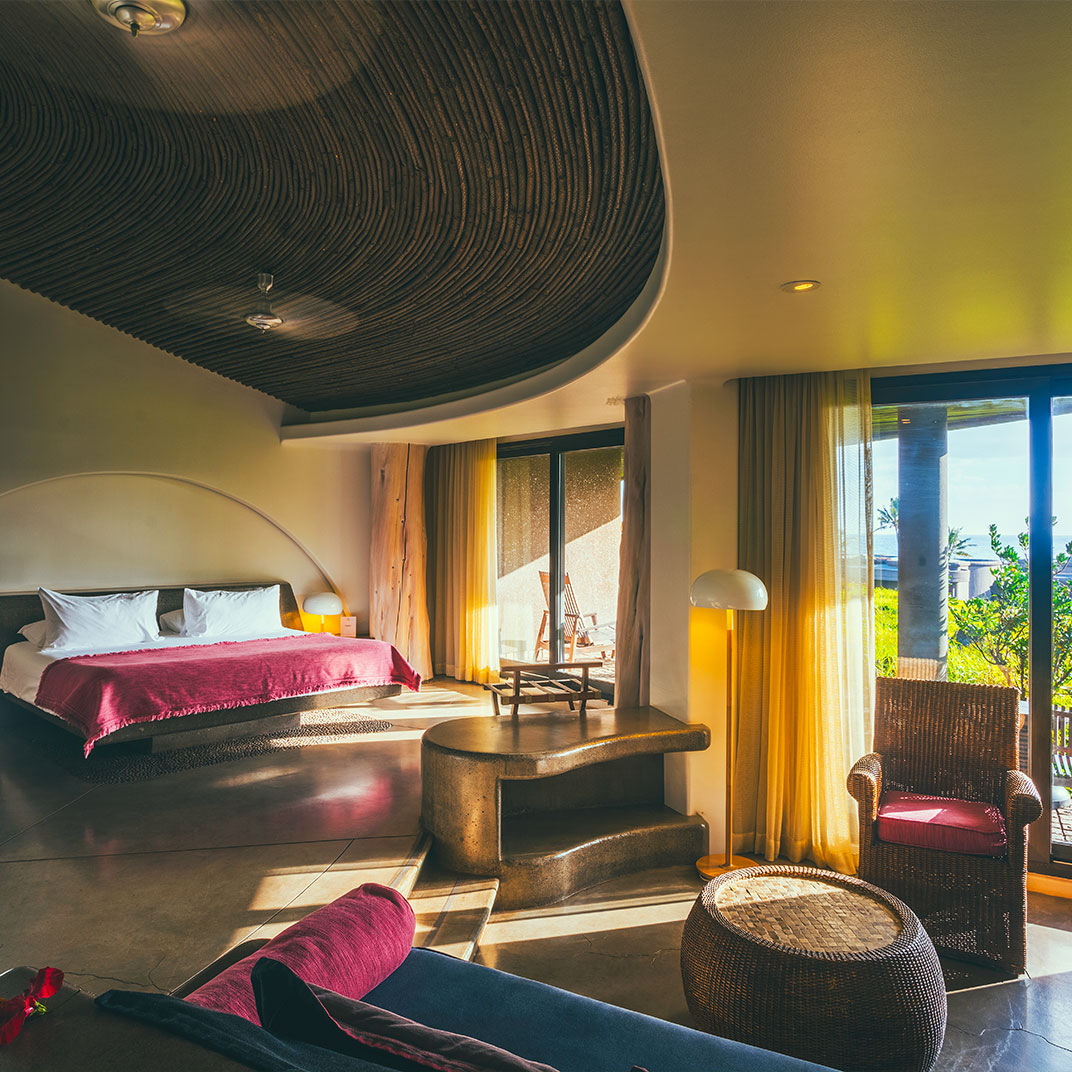 Named for the only town on the island of Rapa Nui — Easter Island — Hotel Hangaroa Eco Village & Spa is a luxury hotel built to blend into the environment. The design was inspired by indigenous tradition, comprising a village-like cluster of low-lying buildings with grass roofs and native wood beams. Guest rooms feature locally sourced materials, from volcanic stone to cypress wood, as well as handmade clay soaking tubs and private terraces overlooking the ocean. There’s a cool geometric swimming pool — the island’s largest — plus a spa and two restaurants specializing in fresh seafood. You’re here for the island’s main attractions, of course, to see the famous moai statues, beaches, and archaeological sites, and the staff can arrange it. But the hotel, located just a few minutes’ stroll from the harbor, is a wonderful refuge to return to at the end of the day.