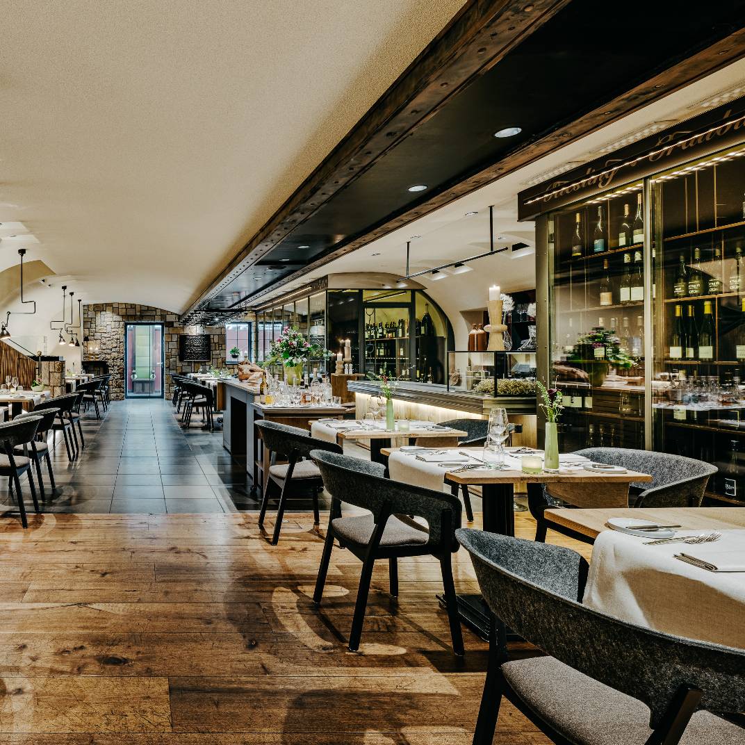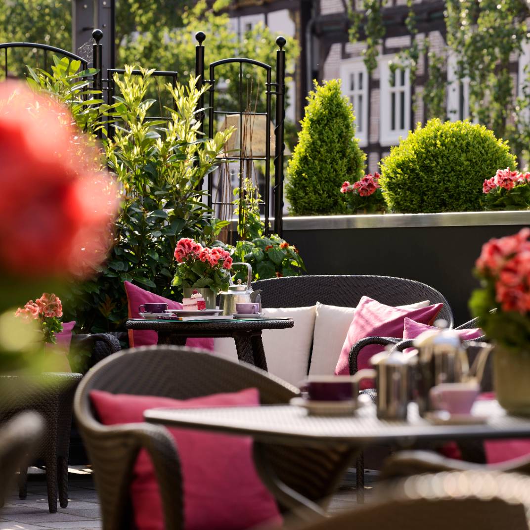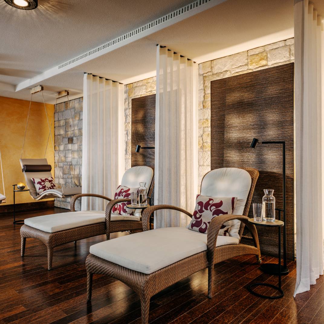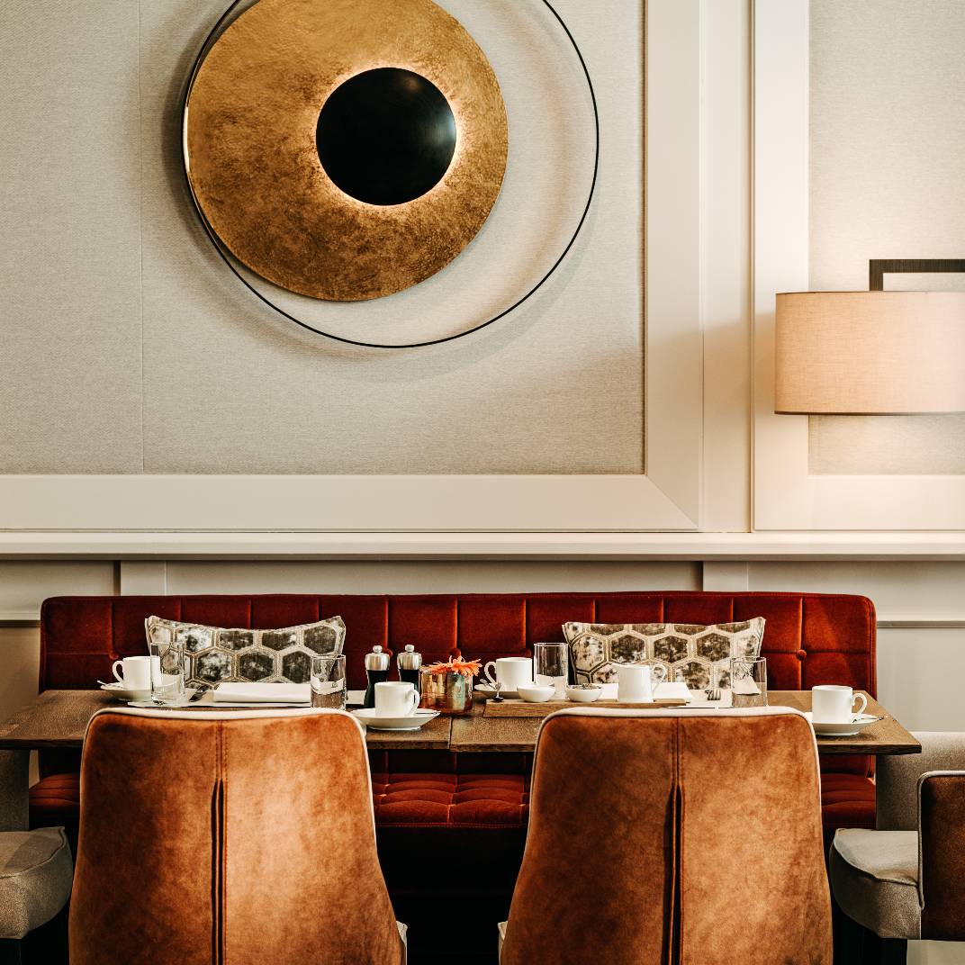 The coziest suites have exposed timber ceilings, separate living rooms, and spacious bathrooms with tubs. Slightly larger rooms feature four-poster beds, bay windows, and fireplaces, and the grandest suites are more like apartments, with fully equipped kitchens, dining rooms, and reading nooks. All of the hotel’s suites are sun-filled and quiet, and many have views over the market square below. In addition to its popular dining venues, Hotel Die Sonne Frankenberg also offers a few amenities exclusively for guests: an elegant breakfast room where a lavish buffet is served each morning, and the fireplace-warmed Philippo Lounge, named after the medieval sculptor who carved the town hall’s iconic wooden figures.