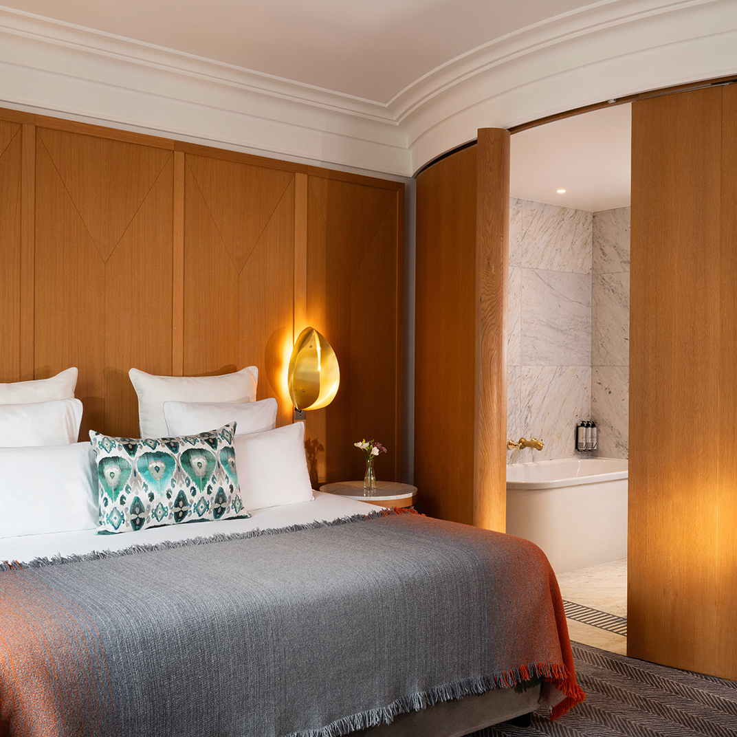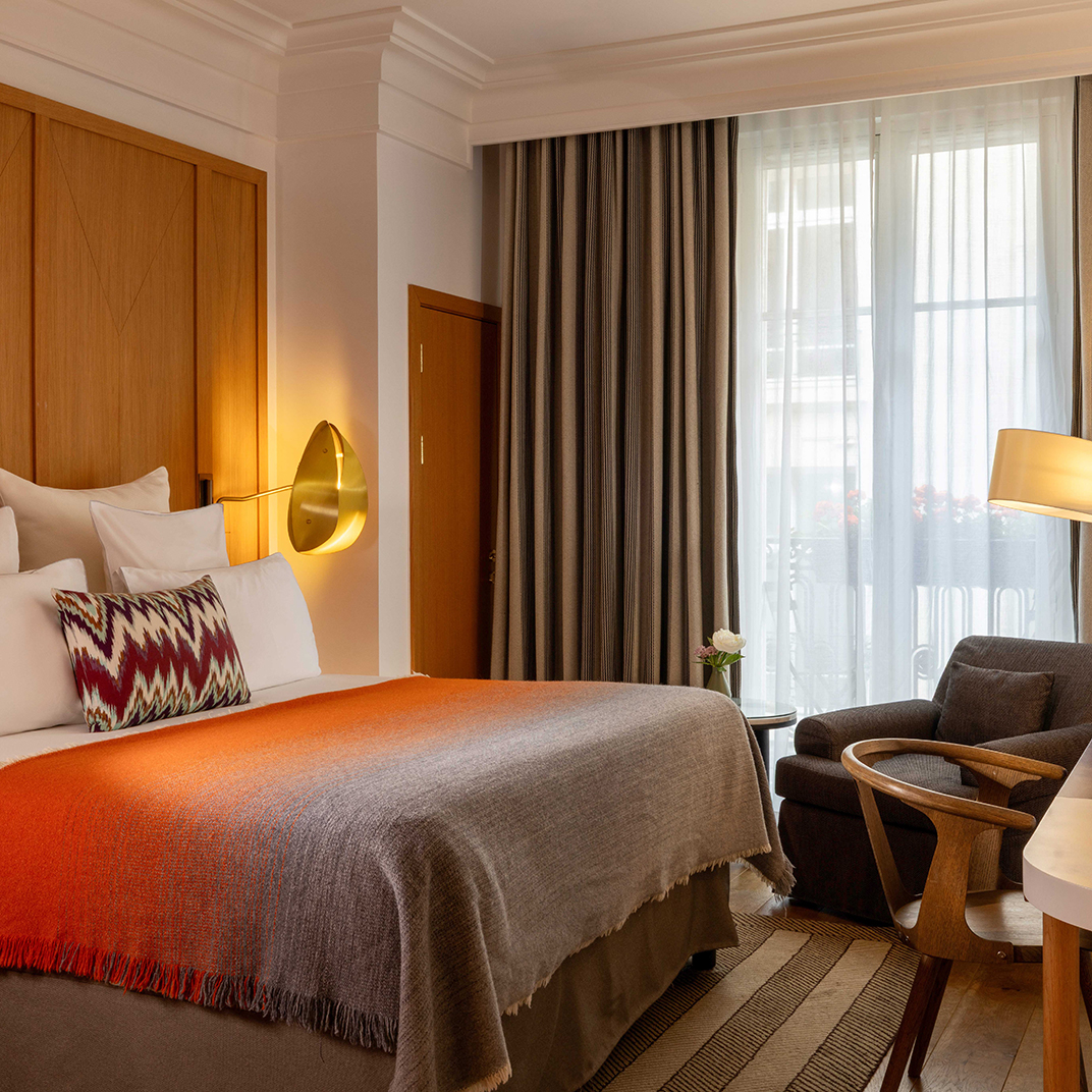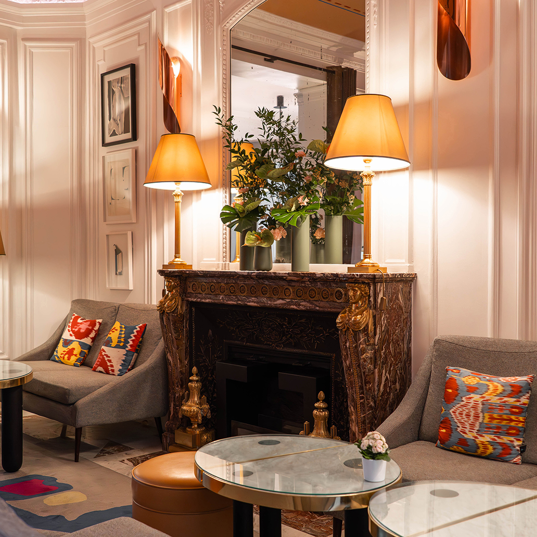 Sister hotel to the Left Bank’s Bel Ami, the Hôtel Vernet is blessed with a singular location: more or less right at the business end of the Golden Triangle, yards from the Arc de Triomphe itself, in a century-old post-Haussmann building by Albert Joseph Sélonier, with a glass dome designed by Gustave Eiffel himself.