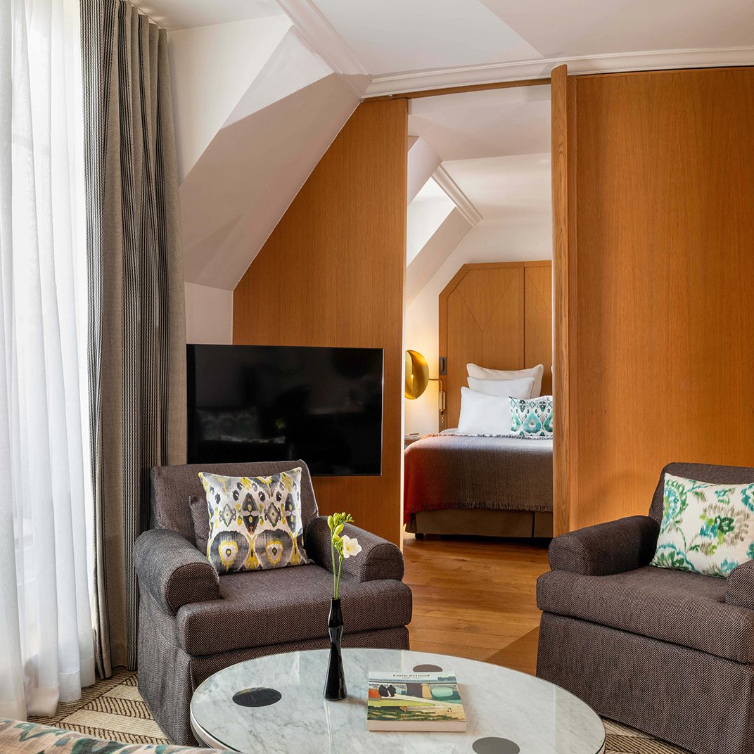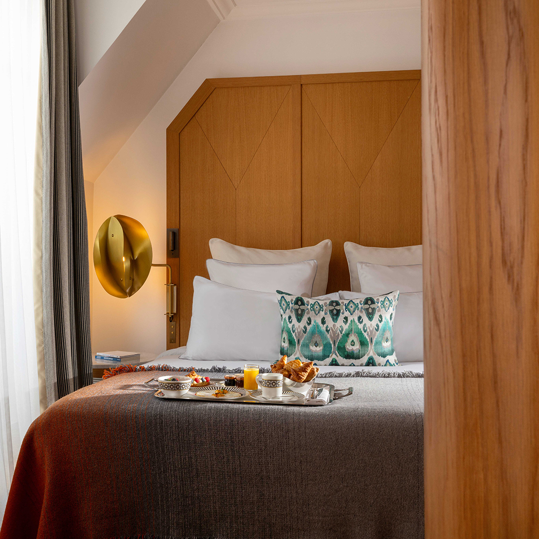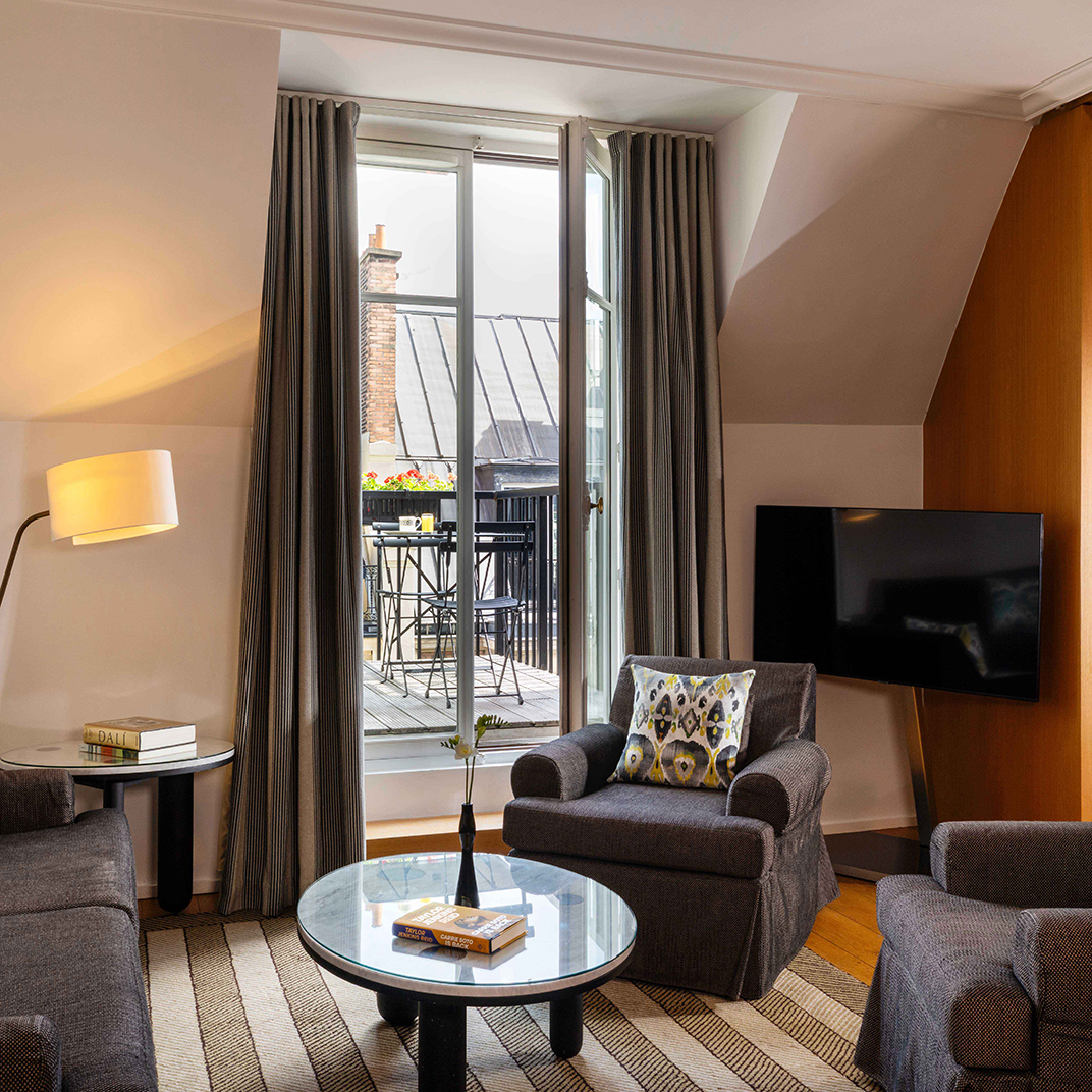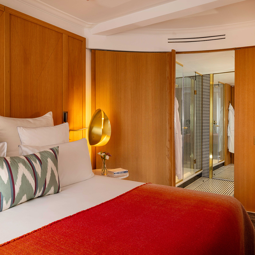 Sister hotel to the Left Bank’s Bel Ami, the Hôtel Vernet is blessed with a singular location: more or less right at the business end of the Golden Triangle, yards from the Arc de Triomphe itself, in a century-old post-Haussmann building by Albert Joseph Sélonier, with a glass dome designed by Gustave Eiffel himself.