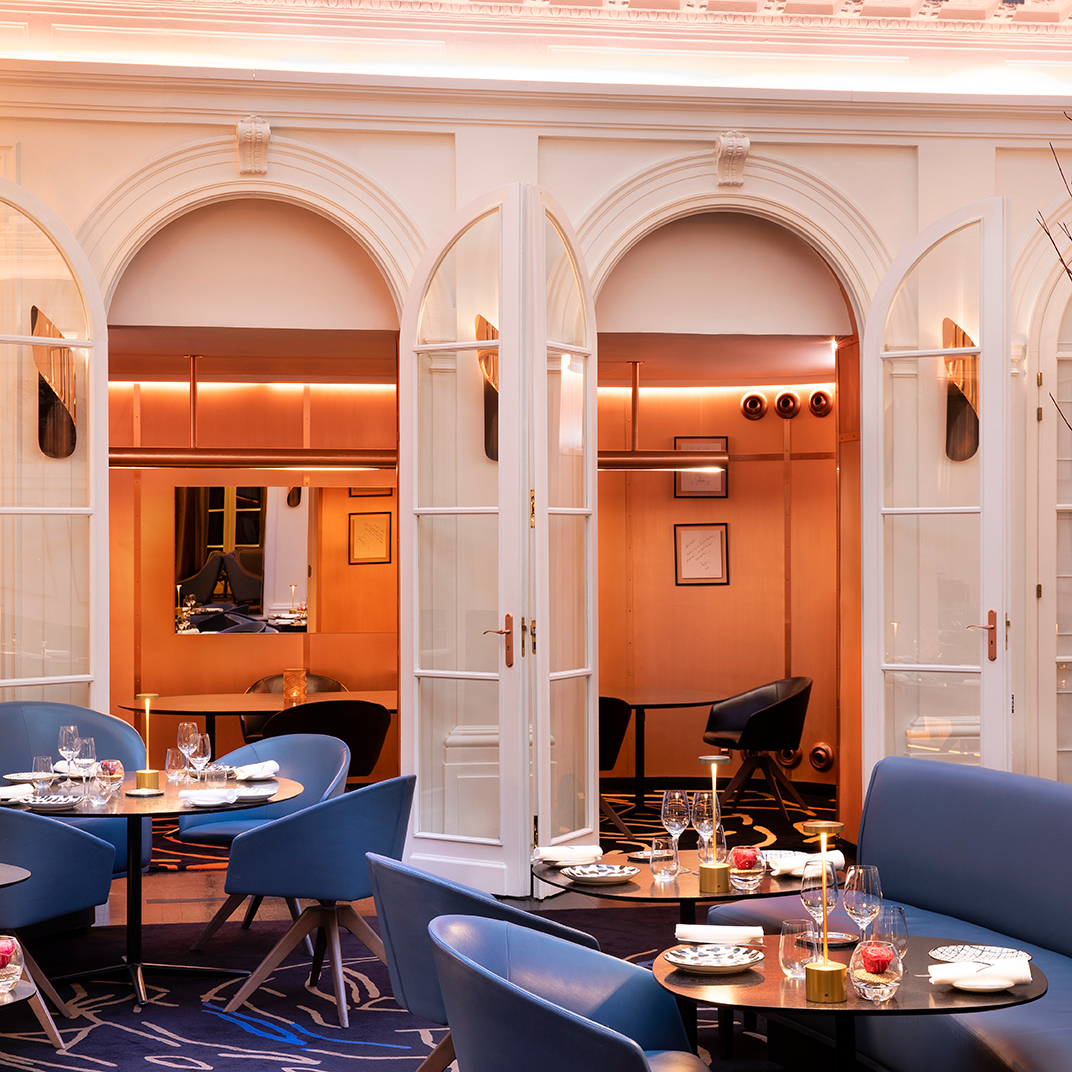 In Paris, a five-star hotel entails above all a magnificent centerpiece of a restaurant, and this one doesn’t disappoint. Modernist furniture and contemporary artworks coexist with the spectacular Eiffel glass ceiling, and the bar, with its curvaceous Carrera marble countertop, is scarcely less striking. All in all it’s a fine addition to the Parisan hotel scene; not at all bad for business, certainly no slouch at pleasure, and walking distance from some of the planet’s most rarefied luxury shopping.