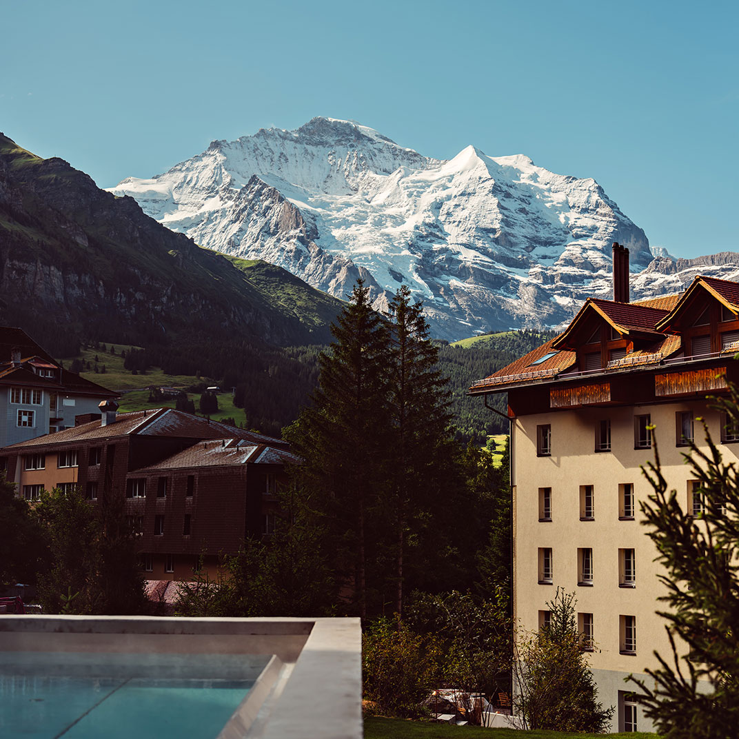 The hotel’s dining and drinking venues include Brasserie Belvedere, a modern Alpine brasserie, and Sonnenbad Lounge & Terrace, which serves grilled dishes and wood-fired pizzas against the backdrop of a spectacular mountain view. Add to this all the charms of a car-free Alpine town, surrounded by world-class winter and summer recreation, and you’ve got a modern classic in the making.