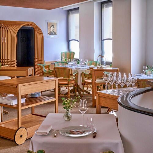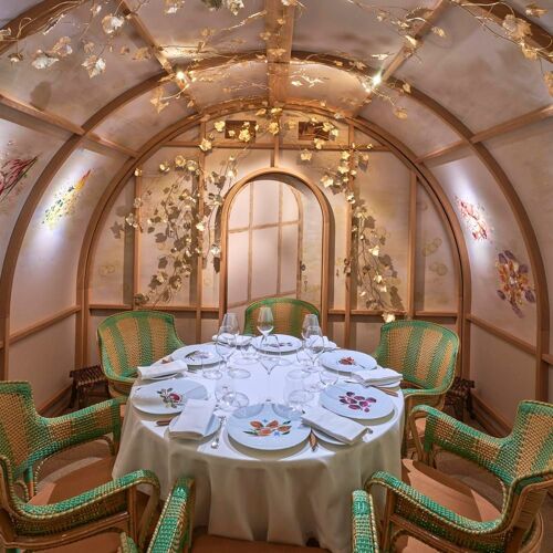"The best cookbook ever written was by Mother Nature herself," according to Alain Passard. His green philosophy is de rigueur more than ever in his cuisine, which is now entirely free of animal protein. The chef who fetes fruit and flowers never feels more at home than when in one of his three kitchen gardens in the west of France, where his twin vocations of cook and gardener meet. He heads there for inspiration and to explore culinary possibilities, coming back with recipes as accomplished as his "sushi fantaisie" or beechwood-smoked potatoes with wine sauce, for example. Enjoy as you take in the bucolic fresco that decorates the dining area.