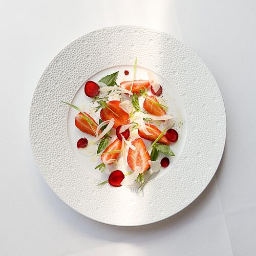 "Since 2001, vegetables have reigned supreme at Arpège and the seasons give the tempo to our cuisine. It is nature that has written the finest cookbook. We sublimate the 100% natural vegetables, fruit and herbs from our three vegetable gardens in Fillé-sur-Sarthe, Le Bois-Giroult and the Mont Saint Michel Bay."