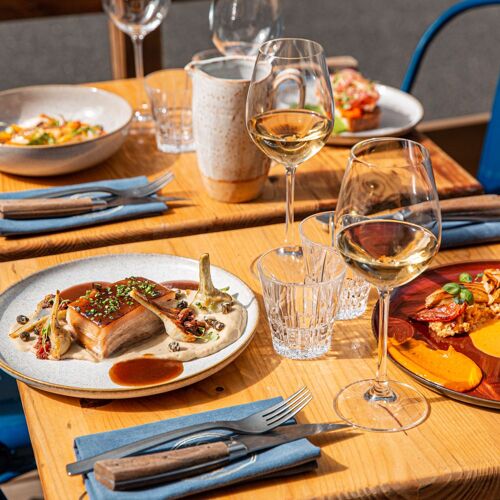 Tiphaine Mollard, from Savoie and Romain Casas, from Béarn, have teamed up, pooling their contagious good humour and respective homelands in this warm, inviting establishment: open kitchen, shelves laden with bottles, knick-knacks, photos and plants. Tomatoes, cream of burrata and vinegar jelly; grilled sardines, green bean salad, pistou and peaches: the food is joyful, tasty, legible and heartily wholesome. Prices that make sense.