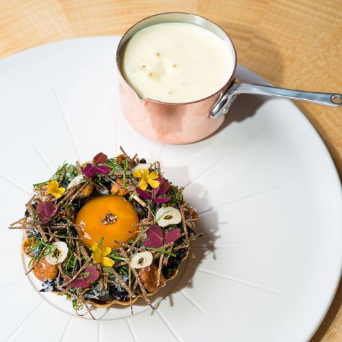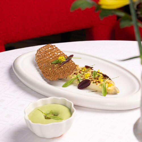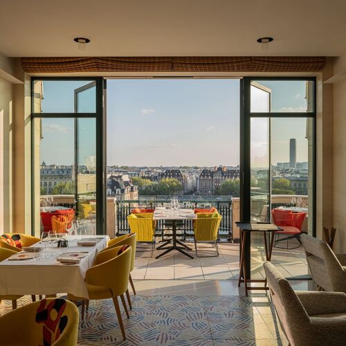 This brasserie, whose colourful decor is the work of Peter Marino, is tucked away on the seventh floor of the Cheval Blanc Hotel. Under the guidance of Arnaud Donckele, chef William Bequin, who boasts an enviable CV, means business. While he respects traditional brasserie rules, the consummate craftsmanship of each dish speaks for itself: macaroni with foie gras, truffle and artichoke, or grilled butterflied sea bass with sauce vierge de printemps. The desserts are the work of Maxime Frédéric. Another noteworthy detail is the terrace, with its breathtaking view of the Seine and the Left Bank.