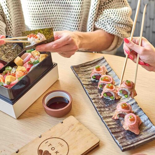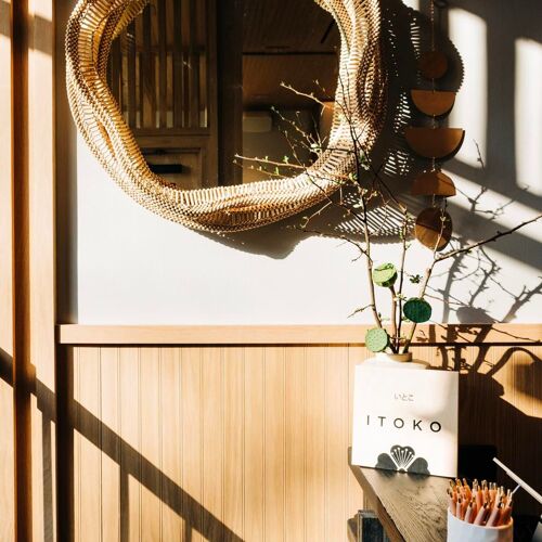 Located in Lakeview, Itoko occupies a modern, sleek space. Guests are welcomed into this bright space with plenty of natural light, hardwood floors and wood detailing on the ceiling with pops of gray and cream throughout. Meanwhile, the large izakaya and sushi menu offers plenty to consider. From hot and cold appetizers to handrolls, sushi and robata, the items display creative combinations with skilled execution. Start with a tom yum hand roll with sweet diced shrimp tossed in a fiery tom yum sauce or the seared mackerel, then opt for the decadent gyoza or the "slider" skewer with beef tsukune wrapped in bao buns and finished with a line of tangy miso mustard. Dessert is a dynamic finish, as in the donatsu, a donut with a donut hole for dipping in matcha semifreddo.