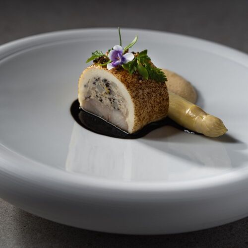 Your evening starts with an aperitif and snacks at the Chef's Table, before you are shown through to a barrel-vaulted cellar with an open kitchen. Here, the team work with calm efficiency and meticulous precision to create a 12 course tasting menu composed of highly sophisticated dishes packed with deep, well-balanced flavours and bags of personality. The setting beneath the castle is magical; for the full experience, stay the night in one of the nearby bedrooms and make the most of their spa.