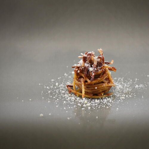 A restaurant with a long tradition, born in the early 1990s from the idea of three brothers of Marche origin: Angelo at the cooker, Giuseppe and Massimo in the dining room. Since then they have become a point of reference in the Capitoline restaurant scene thanks to their highly personalised cuisine, with frequent citations from Lazio and Italy, in some cases proposed in a more or less orthodox version, in others revisited with flair and a touch of audacity. How can we fail to mention the Troiani's Amatriciana (on the menu since 1996!), or the local lamb... The wine cellar contains some 3,600 labels, with a proverbial wine list featuring several vertical wines dating back as far as the 1990s: now a real rarity for connoisseurs! Thanks to Coravin, some of these gems can also be tasted by the glass.