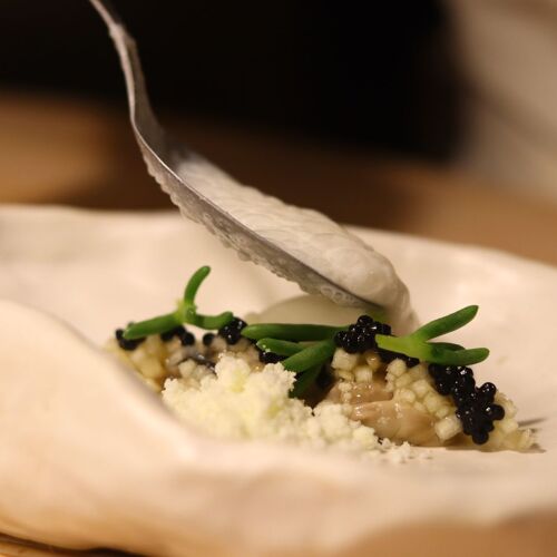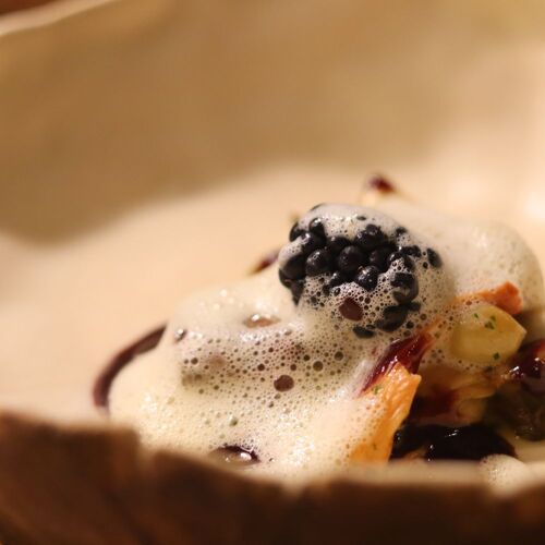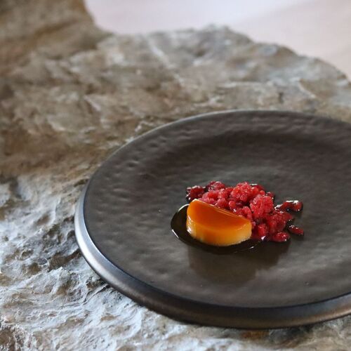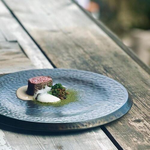 In the northern part of the Aire and Candeeiros Mountains Natural Park, and relatively close to the spiritual town of Fátima, the small parish of Alvados surprises visitors with a tremendously unique restaurant; it is no coincidence that the chef in charge, Diogo Caetano, considers it his own personal culinary haven! Inside its modern setting, dominated by wood and with large glass panes overlooking both the surroundings and the adjacent hotel pool, you can enjoy creative cuisine that always aims to exalt the region’s flavours and produce. It offers an à la carte service (we especially enjoyed the venison tartare with roasted garlic and mustard ice cream) and a good tasting menu (9 courses).